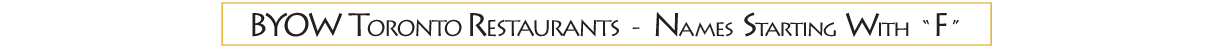 ![]() | FOX AND FIDDLE 106 JOHN ST. UNIT 3 TORONTO - ON Phone : 647-748-0369 Corkage - n/a - (Please call the restaurant regarding its BYOW policy) Website |