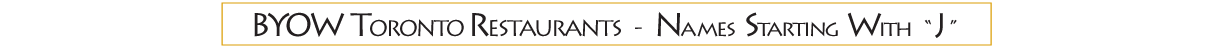 JANKIE’S PLACE RESTAURANT LOUNGE 985 BLOOR ST W TORONTO - ON Phone : 416-516-5353 Corkage - n/a - (Please call the restaurant regarding its BYOW policy) Website |