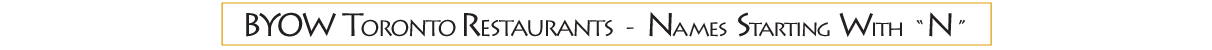 NOVE TRATTORIA 1406 YONGE ST TORONTO - ON Phone : 647-345-5848 Corkage - n/a - (Please call the restaurant regarding its BYOW policy) Website |